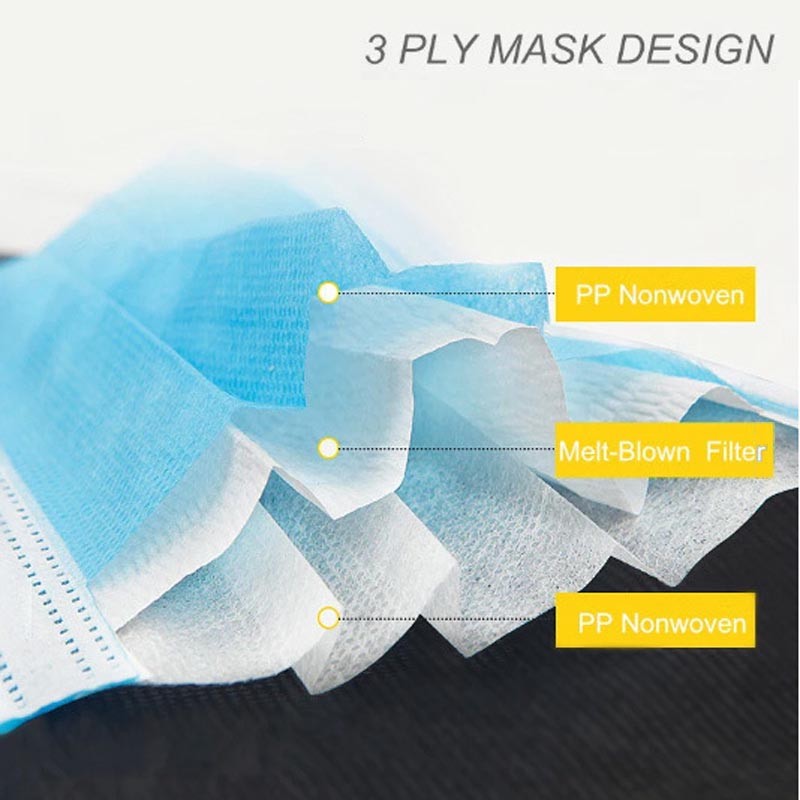 3LFM 50-Pack Premium 3-Layer Soft Earloop Disposable Face Masks
