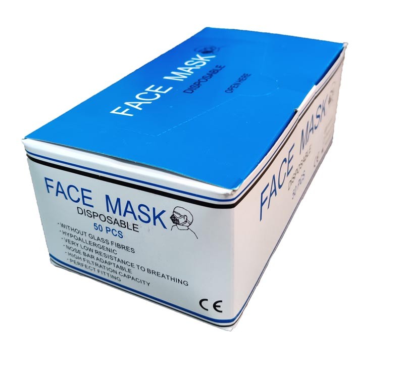 50-Pack Premium 3-layer soft earloop disposable face masks