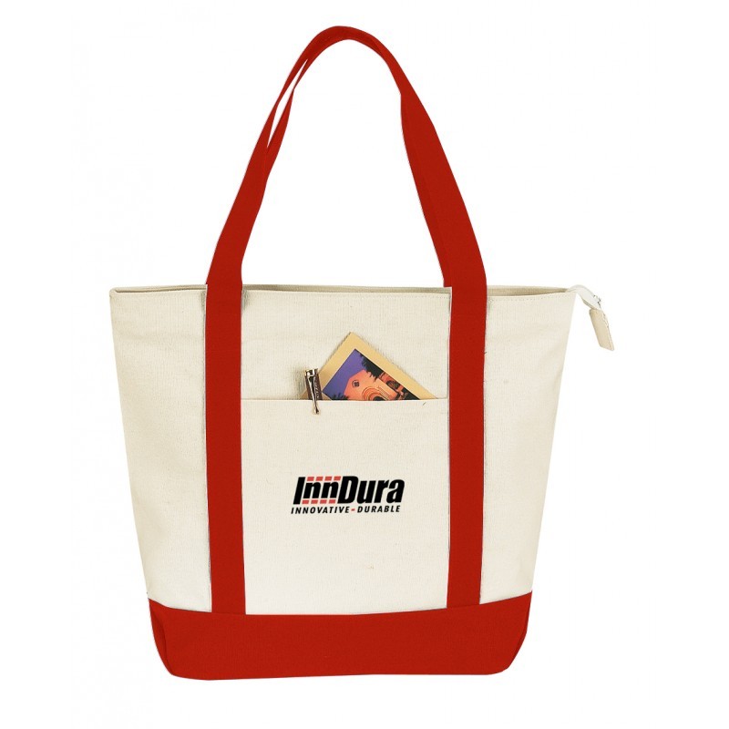 MAIN ZIPPER CLOSURE CANVAS TOTE W/24" HANDLE