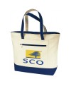 ZIPPER CANVAS TOTE W/FRONT/INSIDE POCKET & 22" HANDLE