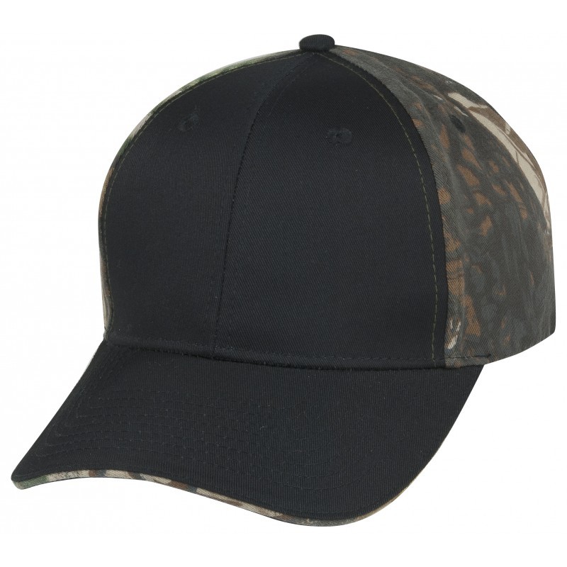 Solid Visor and Front Crown with Camo Mesh Back and Camo Sandwich Bill