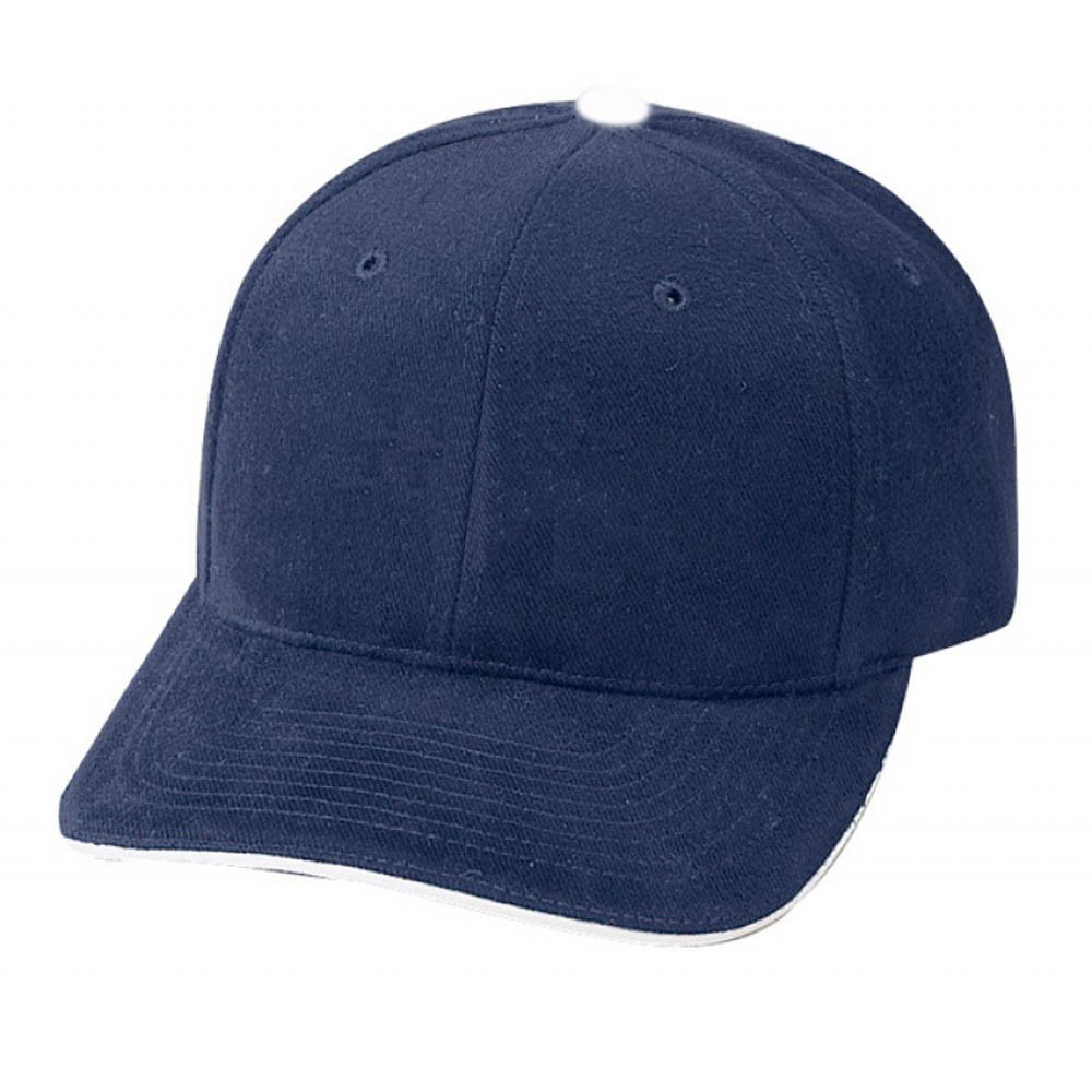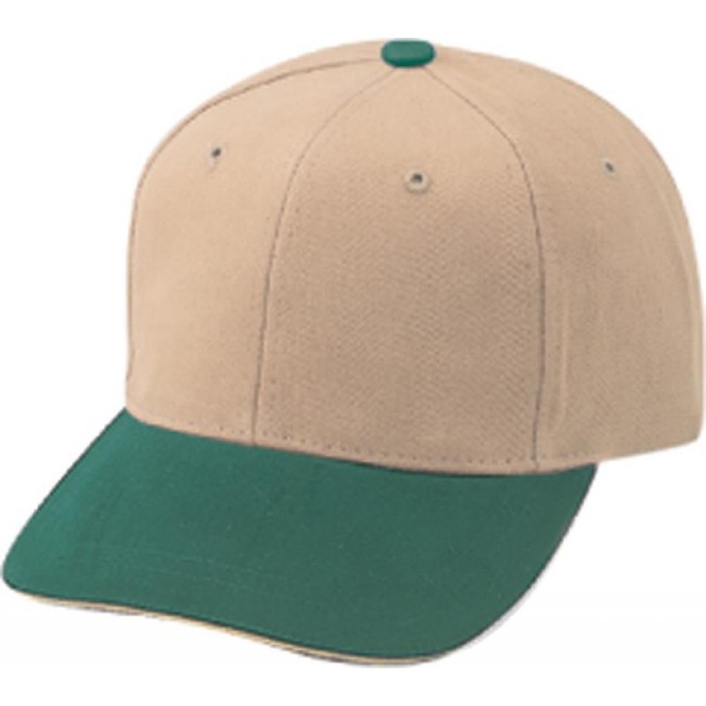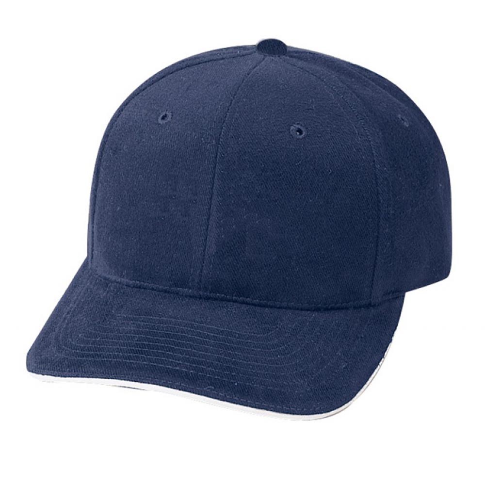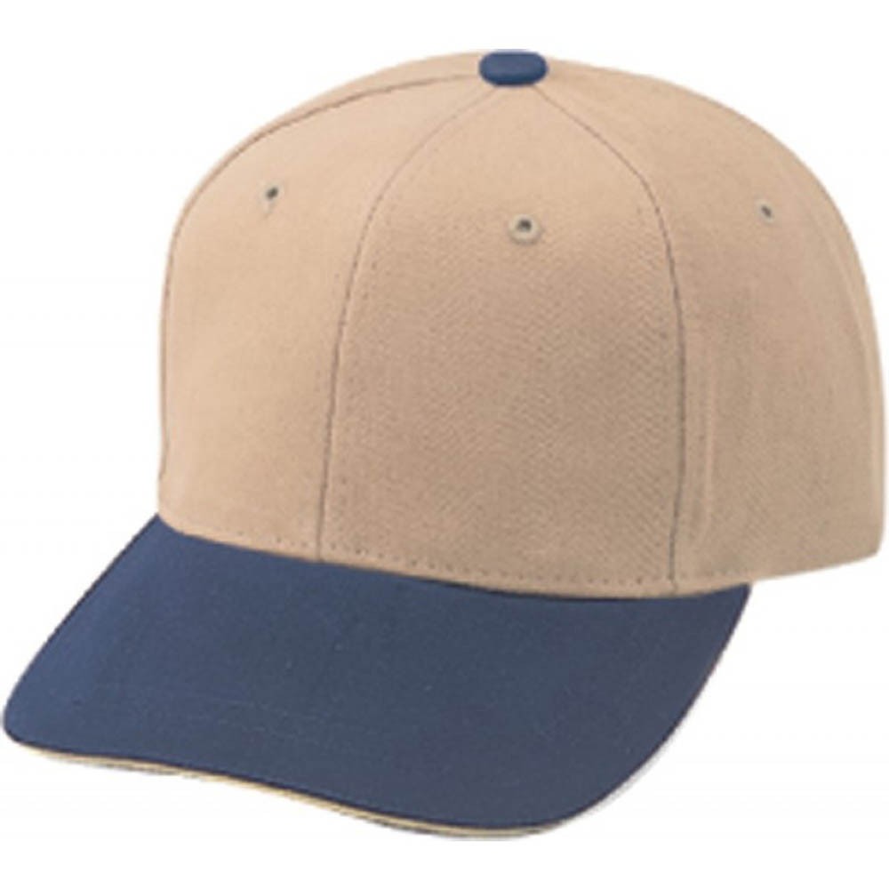 Style # 24202 Sandwich Bill; 6-panel cap, unconstructed, 100% cotton, heavy brushed, self-cloth Brass Buckle closure.