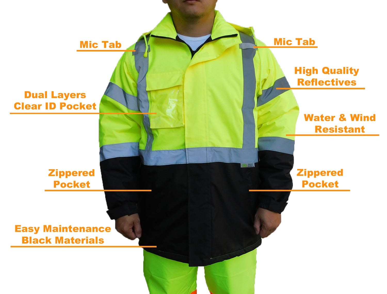ANSI Class 3 Parka Safety Jacket w/ Black Bottom