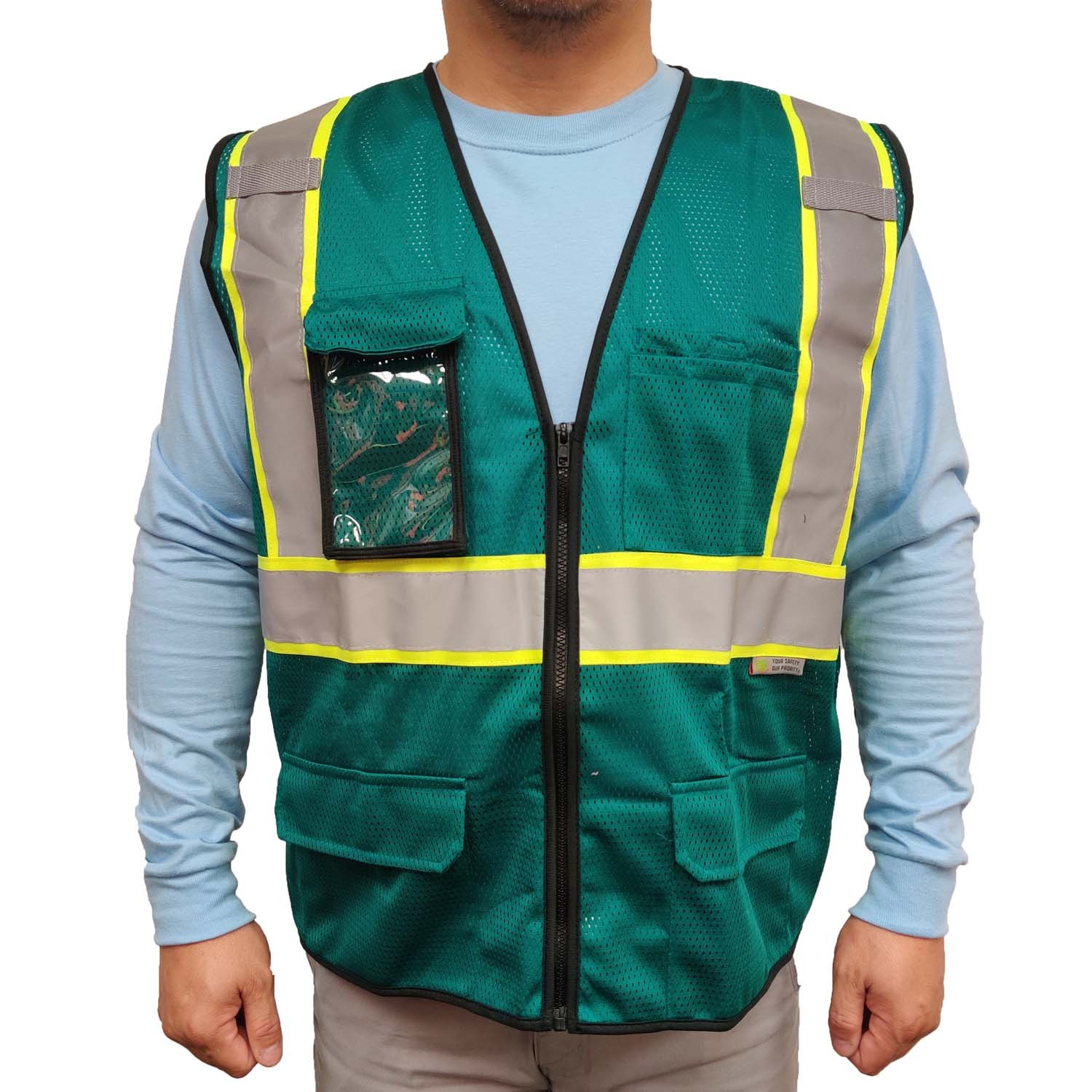 Deluxe Green Cool Mesh Safety Vest w/ Clear ID / Cell Phone Pocket - Non-ANSI