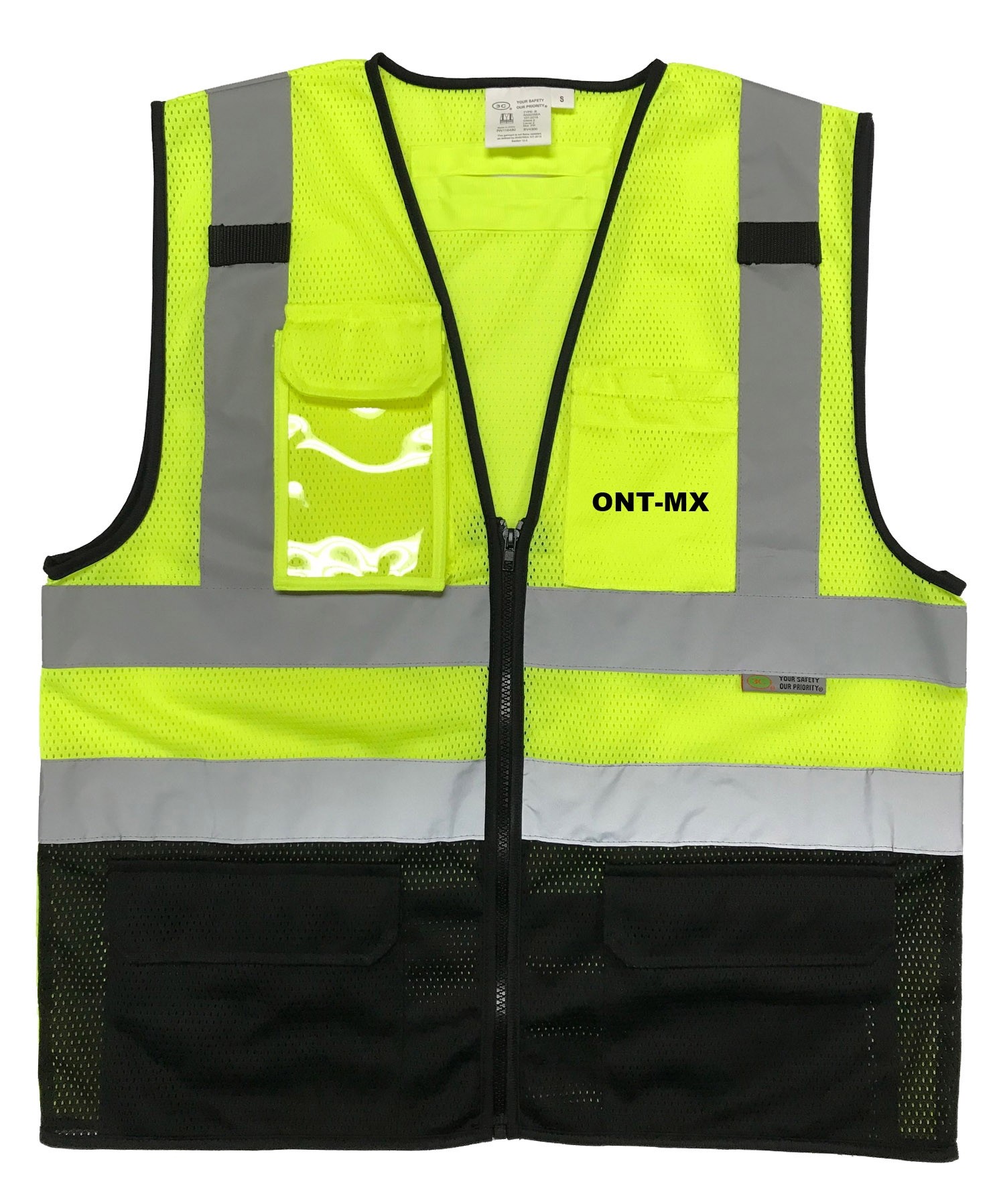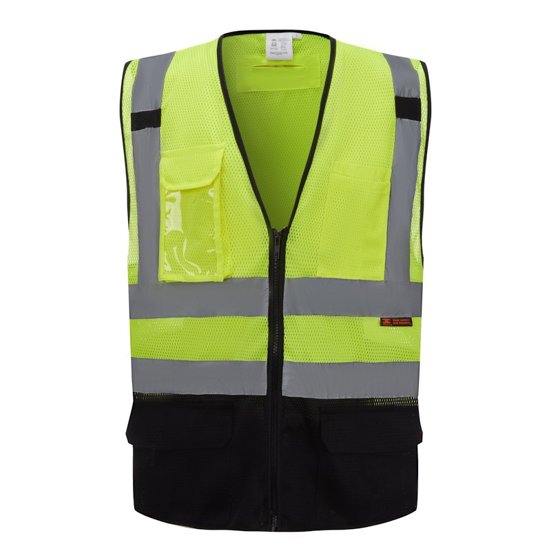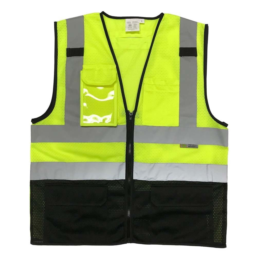 SV4300 ANSI 107-2015 Class 2 Safety Vest ANSI/ISEA with 9 Pockets,Black-Bottom Neon Green/ Black