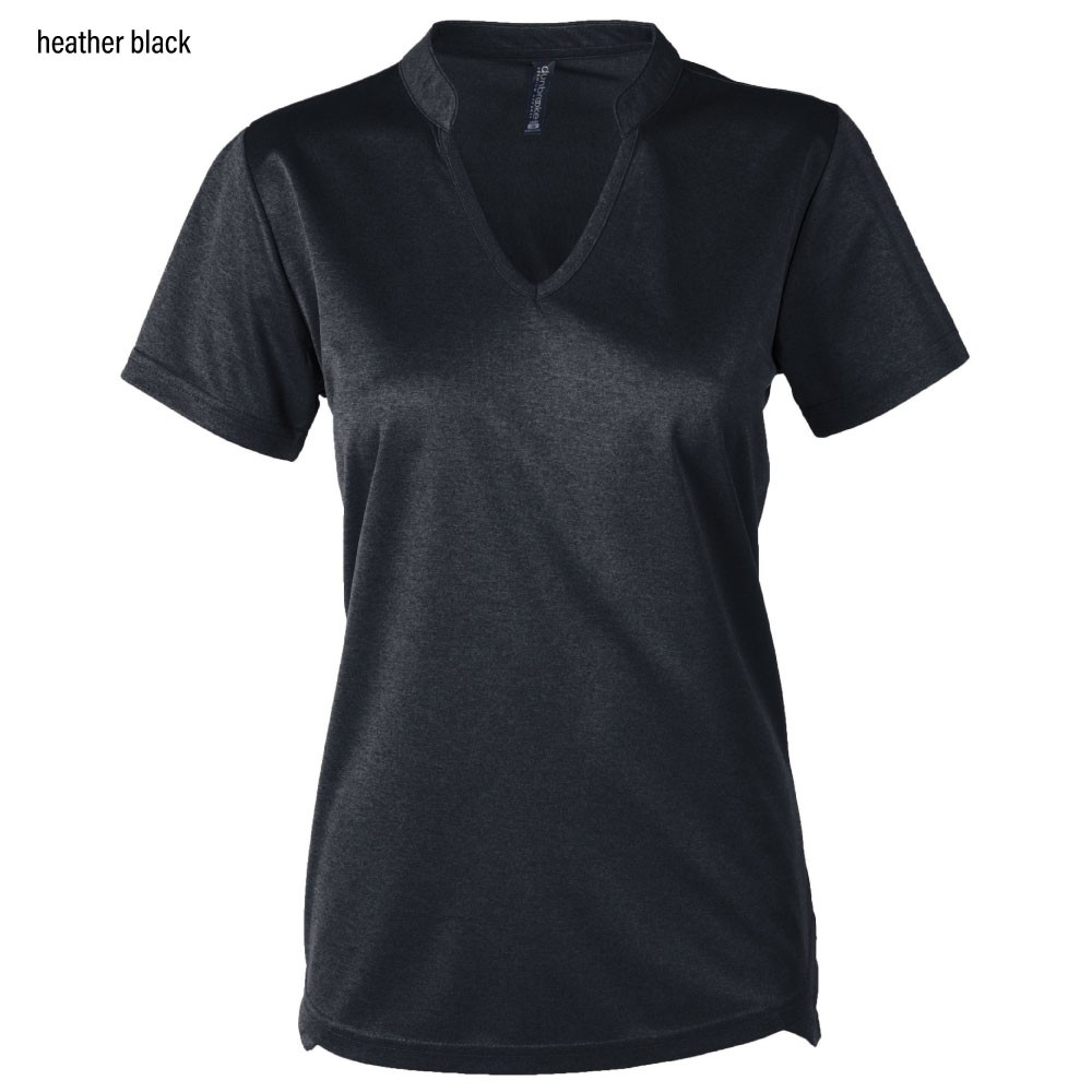 Achieving style and comfort has never been easier than it is with EcoTitle. This heather performance polo is made from recycled polyester, making it the perfect choice for sustainability. It features a NEW Mandarin V-neck collar with a detailed hem.
