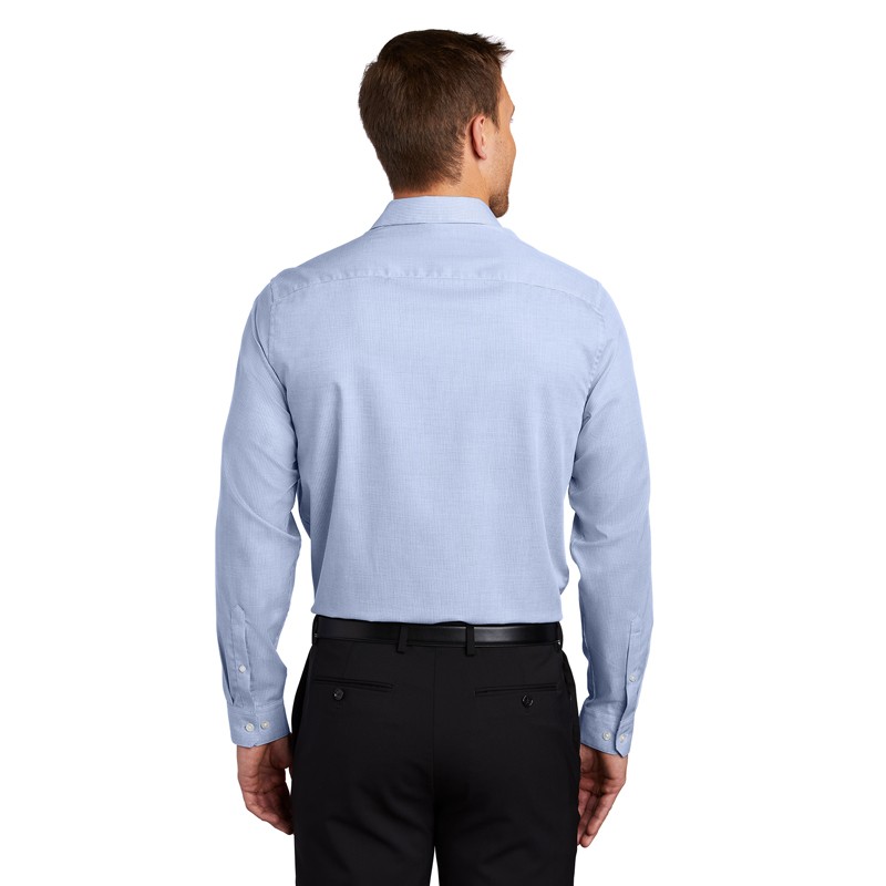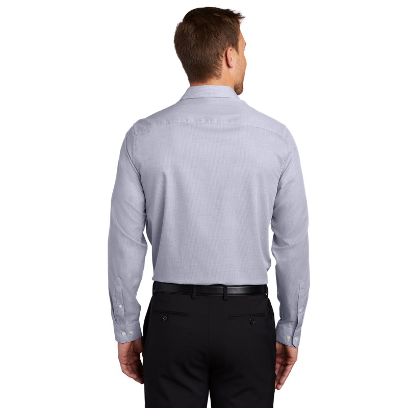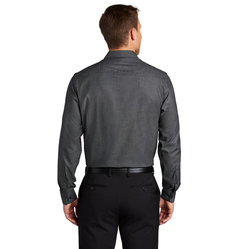 A subtle pin check pattern offers understated texture in these wrinkle-resistant shirts