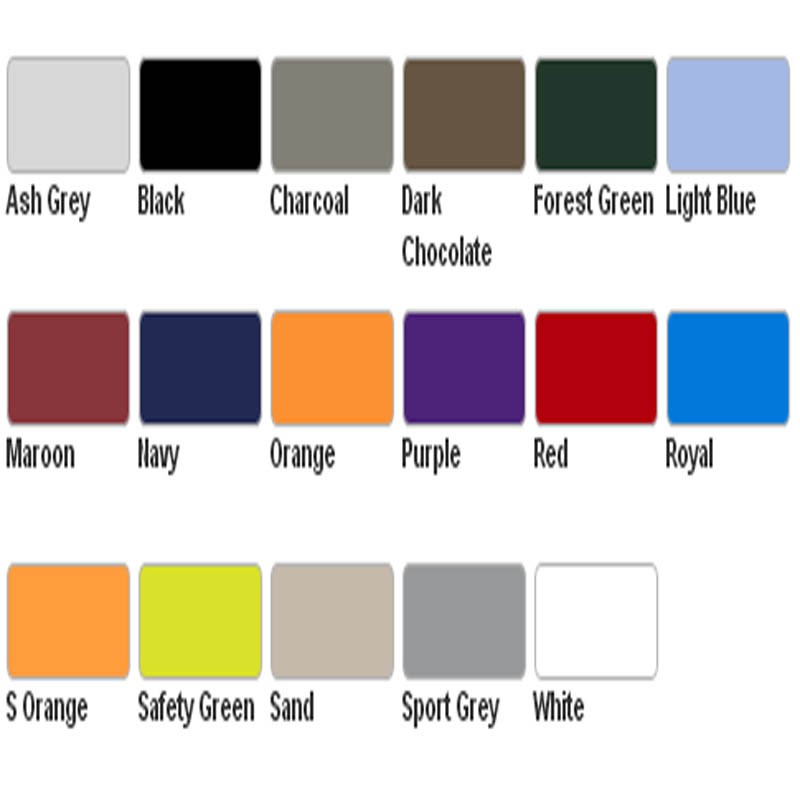 Safety Green and Safety Orange are 50% cotton, 50% polyester
