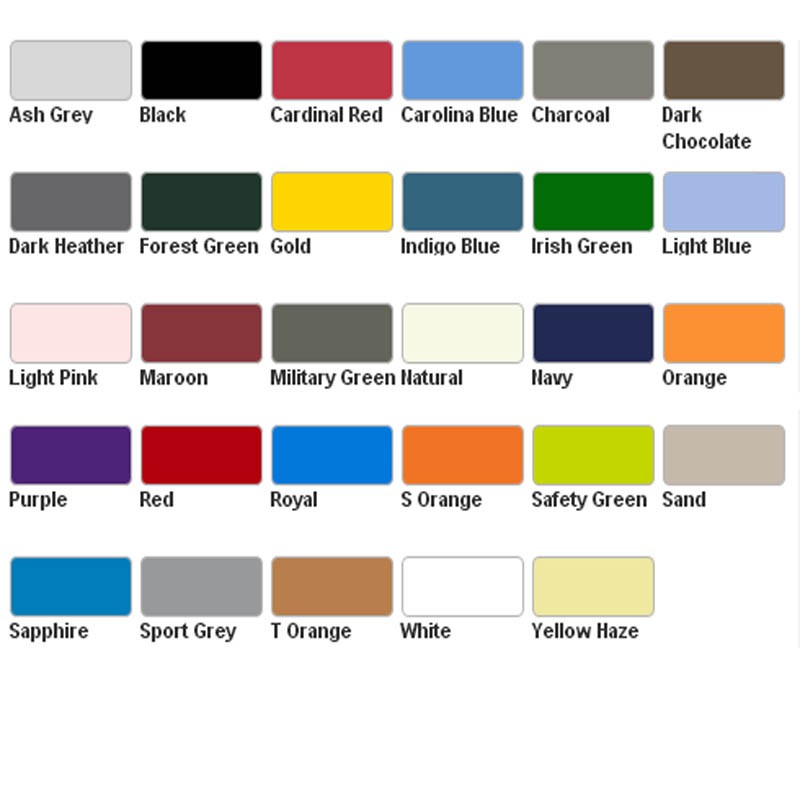 Ash Grey is 99/1; Sport Grey is 90/1 Dark Heather, Safety Green and Safety Orange are 50% cotton, 50% polyester