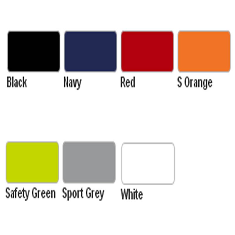 Sport Grey is 90/10 cotton/poly; Safety (Green & Orange) are 50/50